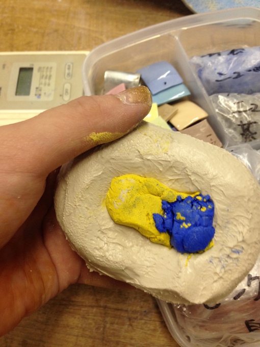磁土に混ぜる顔料は、1%~2%くらいでかなりシビア。