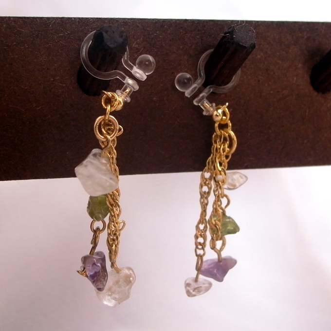 次に、さざれアメジストのドロップイヤリング(ノンホールピアス)。
