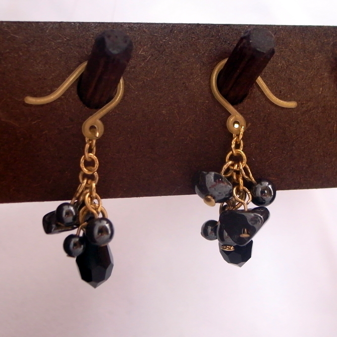 最後に、ヘマタイトとスワロフスキーのドロップイヤリング。